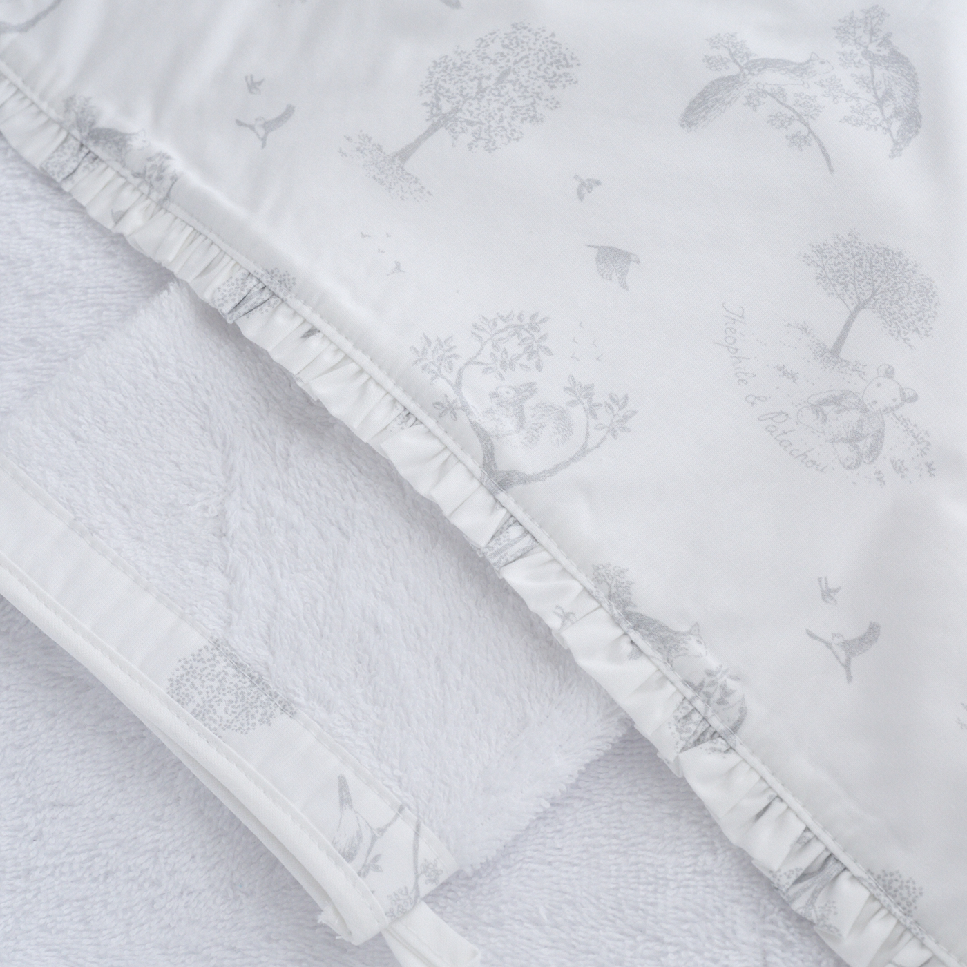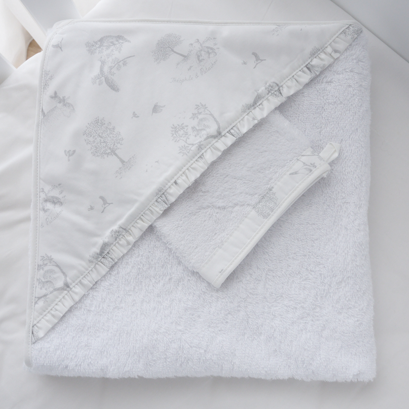 La cape de bain et le gant assorti « Soft Grey » :